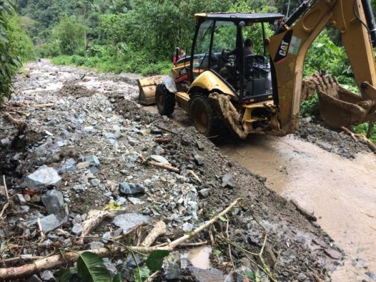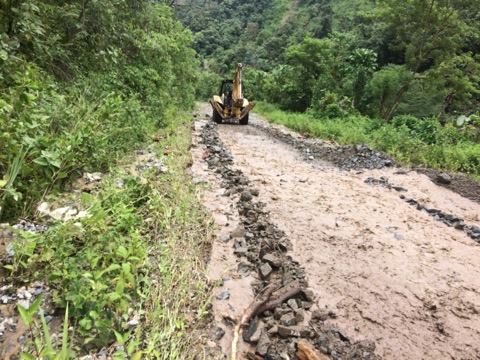 El Gobierno Parroquia de Chaucha, realizando trabajos de mantenimiento vial. En la vía principal y vías de acceso a las comunidades con la máquina de la institución